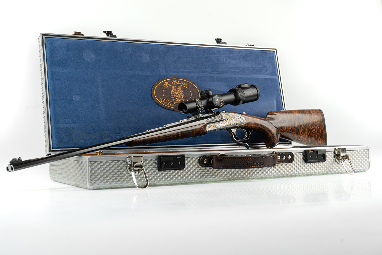 Die Doppelbüche (zwei nebeneinander liegende Läufe) gilt als klassische Waffe für die Drückjagd auf Hochwild. Die zwei sofort verfügbaren Schüsse ohne Repetieren machen sie für diese Jagdform besonders geeignet. Hersteller H. Scheiring aus Ferlach ist für exklusive, handgefertigte Jagdwaffen aus Österreich bekannt. Technisch gäbe es ähnliche Waffen in Österreich, die aufwendige Ausführung und Gravur im Kundenauftrag machen das Exponat jedoch zum exklusiven Einzelstück, so der Gutachter.